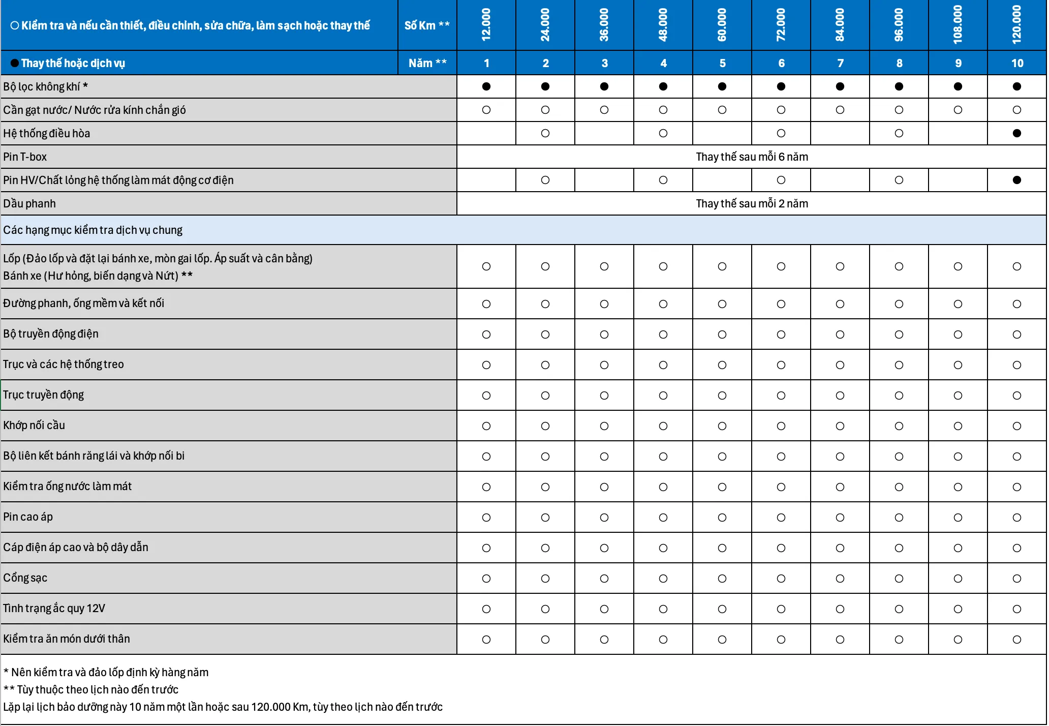 Bảo dưỡng định kỳ được thực hiện theo một chu kỳ nhất định – quy định bằng quãng đường và thời gian sử dụng. Đây là điều kiện cần để được hưởng Chính sách Bảo hành.