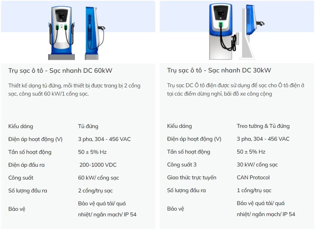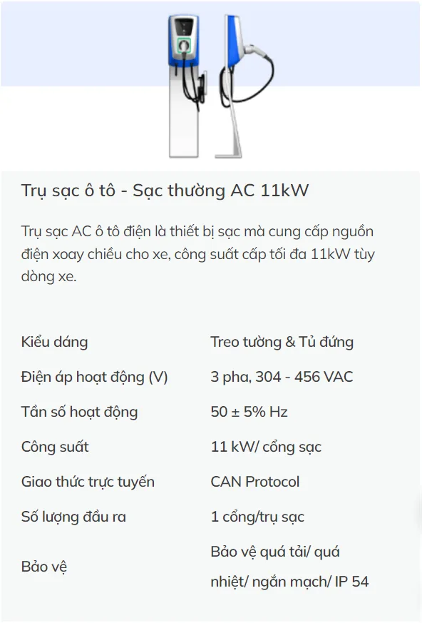 | Số lượng đầu ra | 1 cổng/trụ sạc |