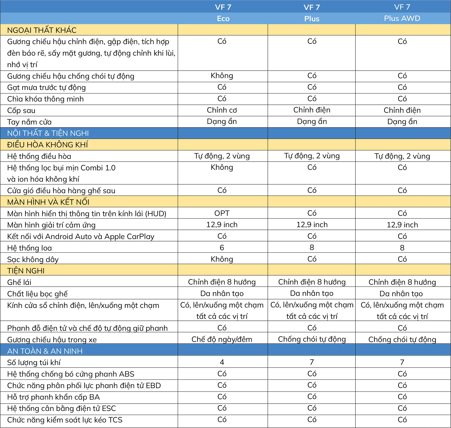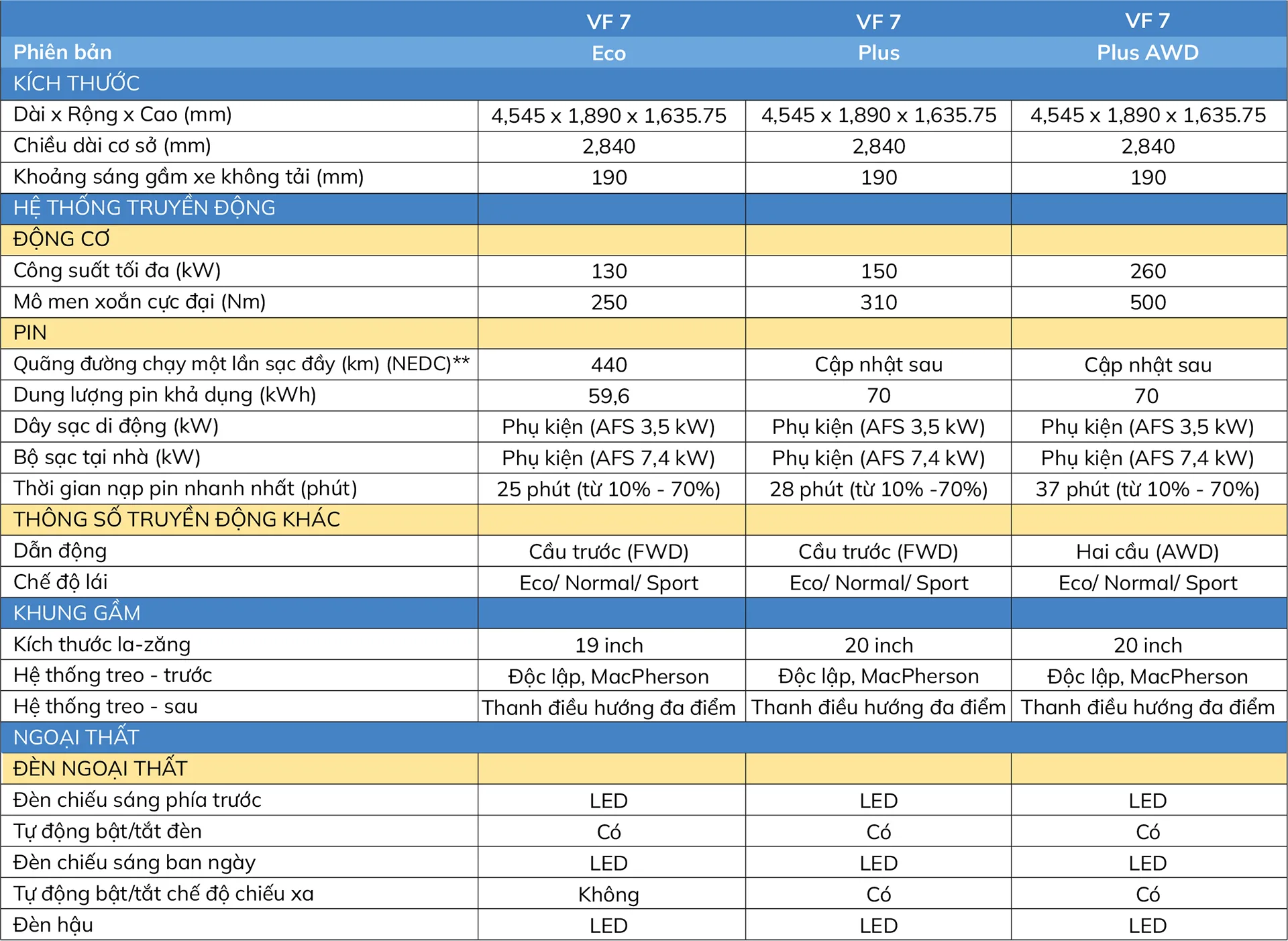 Các phiên bản và Giá bán của VinFast VF 7